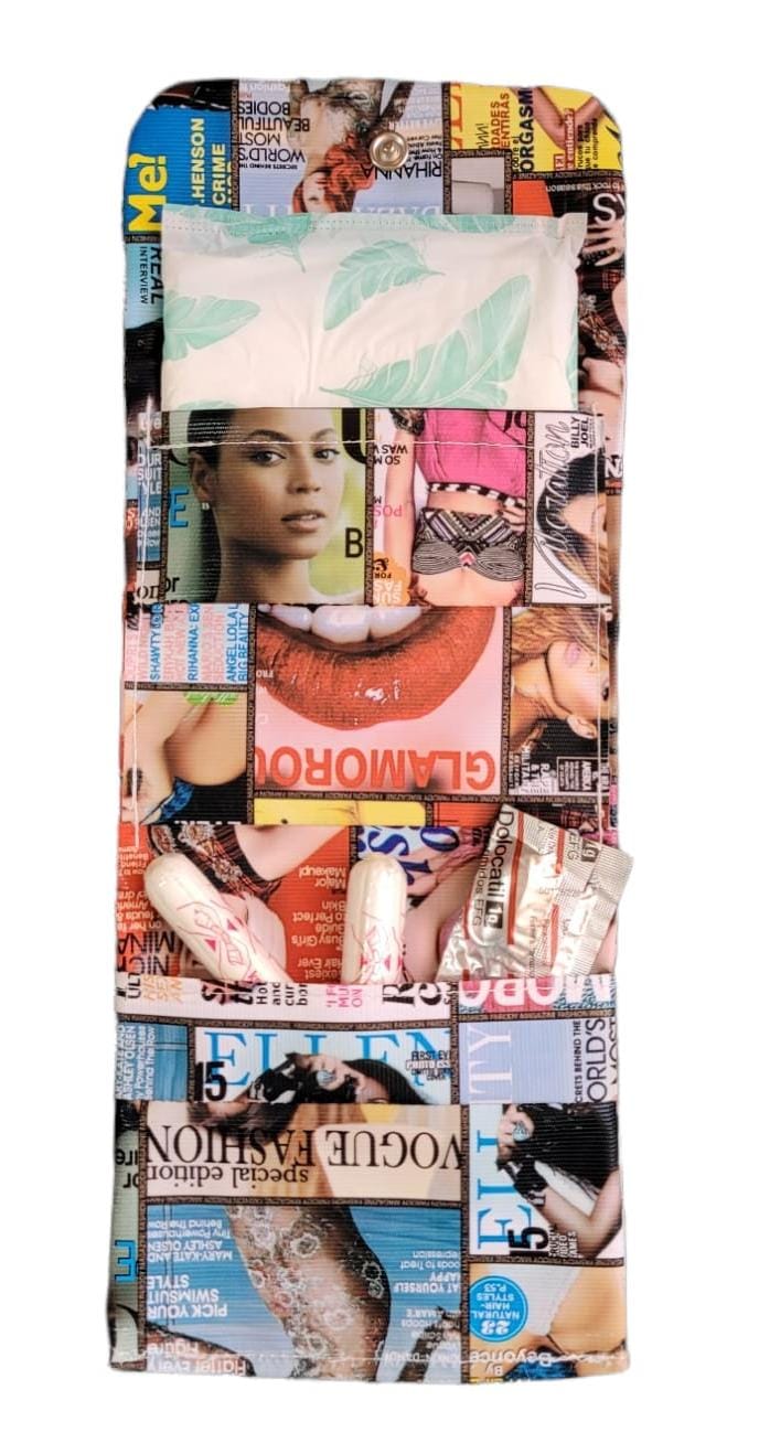 Descripción: Cartera intima para mujer. Impermeable. Ideal para llevar compresas tampones, etc.