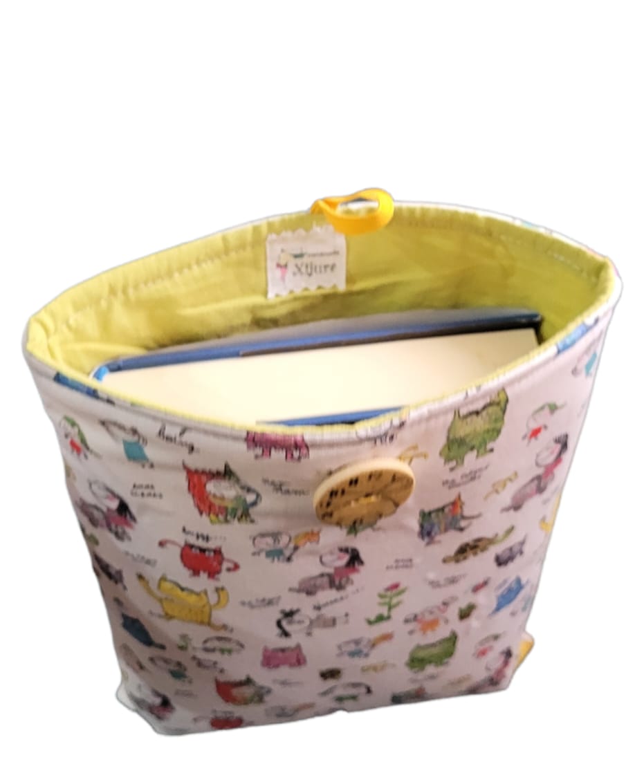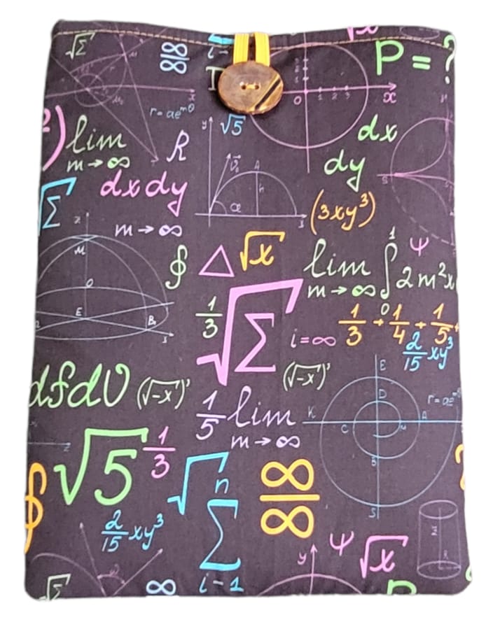 Descripción: Funda para libro acolchada. Con bolsillo. Confeccionada con telas de algodón y con forro interior. También puedes guardar un IPad o libro electrónico.