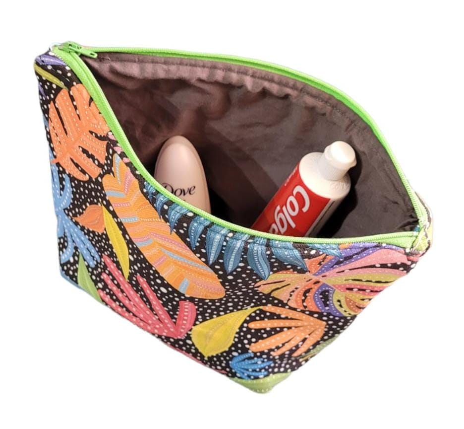 Descripción: Estuche de tela de algodón, forrado y acolchado. Una vez abierto tiene la forma de lapicero para que puedas acceder fácilmente a cada cosa.